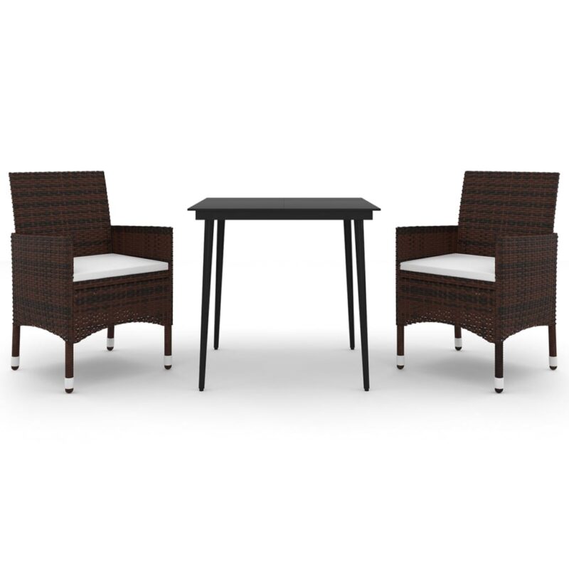 3-tlg. Garten-Essgruppe mit Auflagen Poly Rattan und Glas