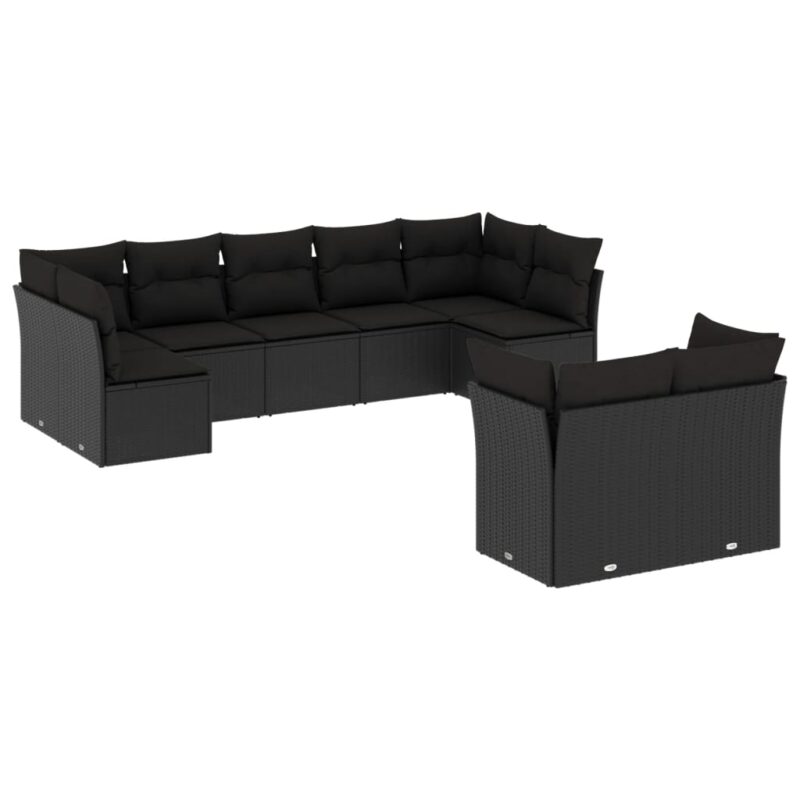 9-tlg. Garten-Sofagarnitur mit Kissen Schwarz Poly Rattan