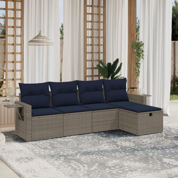 5-teiliges Gartensofa-Set mit Kissen, braun, Polyrattan