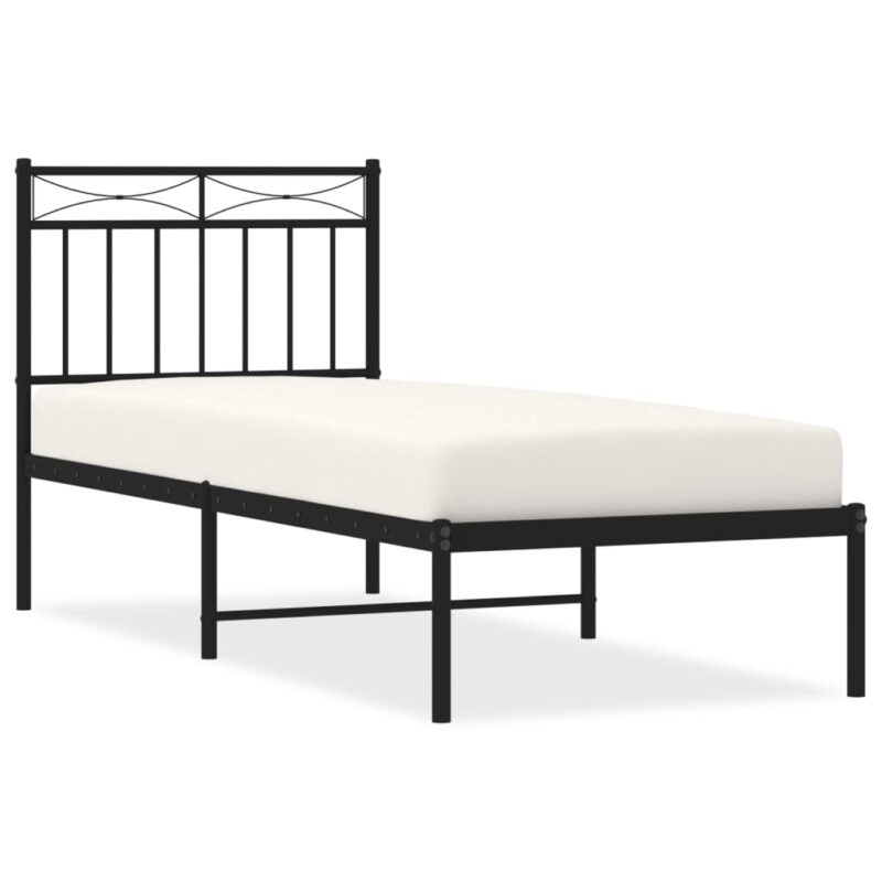 Bettgestell mit Kopfteil Metall Schwarz 135×190 cm