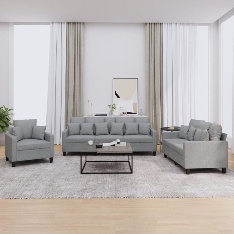 3-tlg. Sofagarnitur mit Kissen Hellgrau Stoff