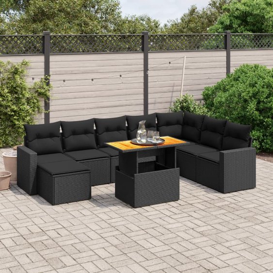 9-tlg. Garten-Sofagarnitur mit Kissen – Massivholz Akazie