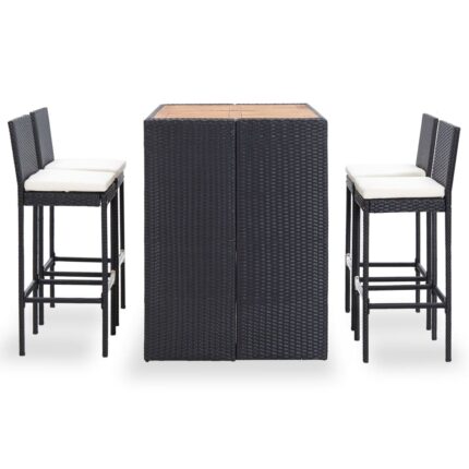 5-tlg. Garten-Bar-Set Poly Rattan und Akazienholz Schwarz – Massivholz Akazie