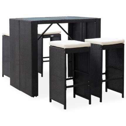 9-tlg. Gartenbar-Set Poly Rattan Schwarz