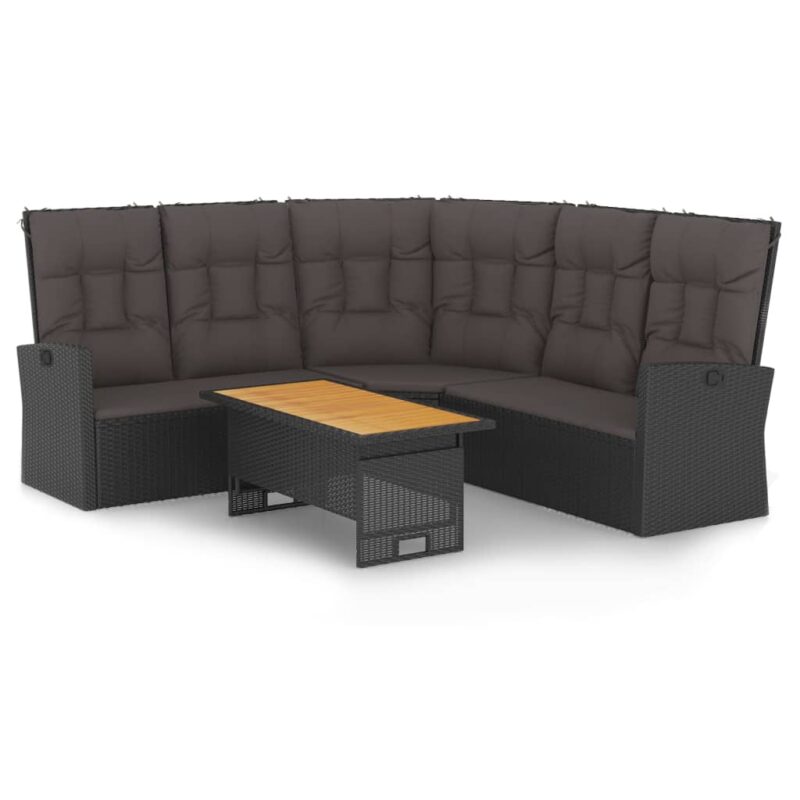 3-tlg. Garten-Essgruppe mit Kissen Schwarz Poly Rattan Glas