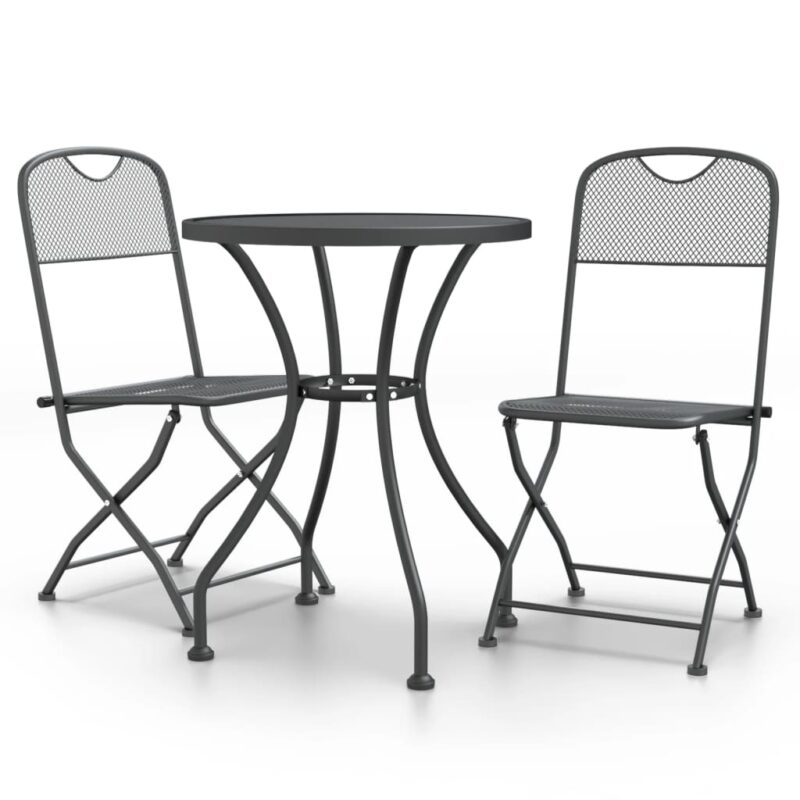 3-tlg. Garten-Essgruppe Streckmetallgitter Anthrazit