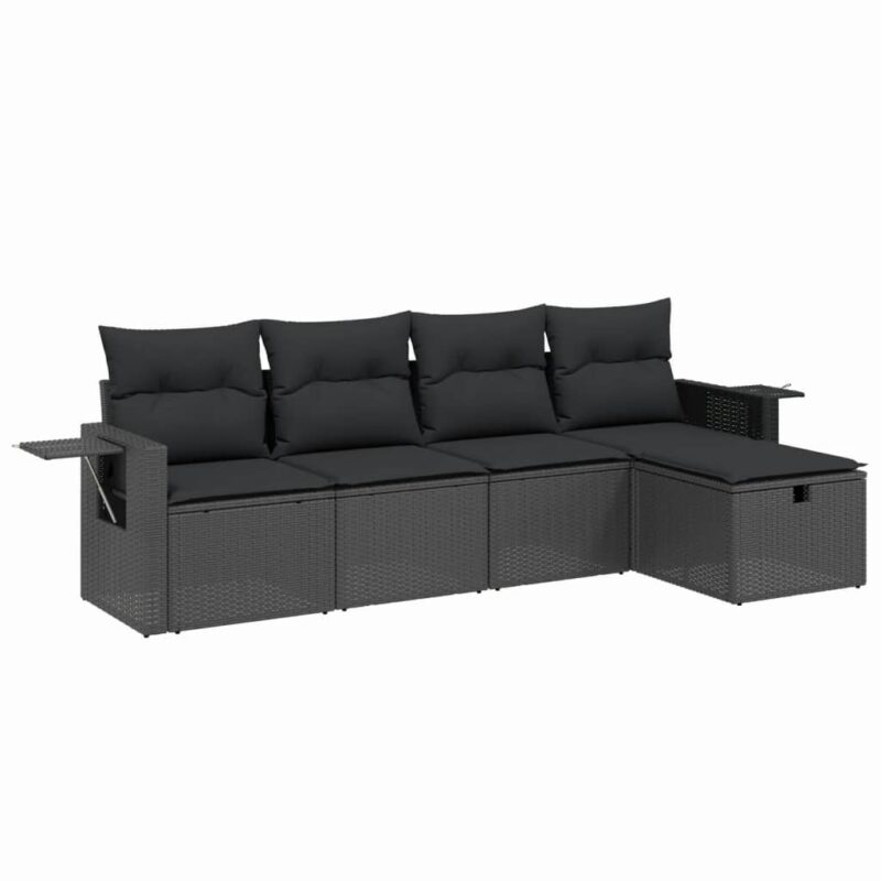 5-tlg. Garten-Sofagarnitur mit Kissen Beige Poly Rattan