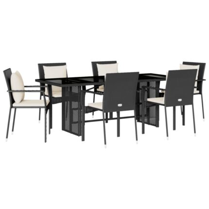 7-tlg. Garten-Essgruppe mit Kissen Schwarz Poly Rattan