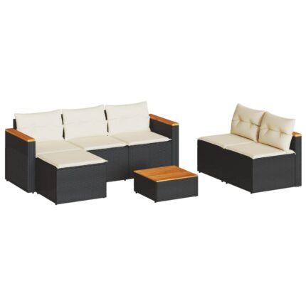 5tlg. Garten-Sofagarnitur mit Kissen Schwarz Poly Rattan Akazie – Massivholz Akazie