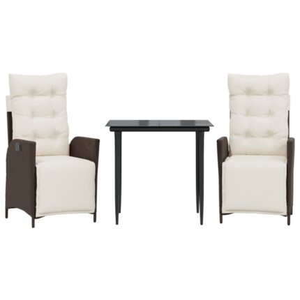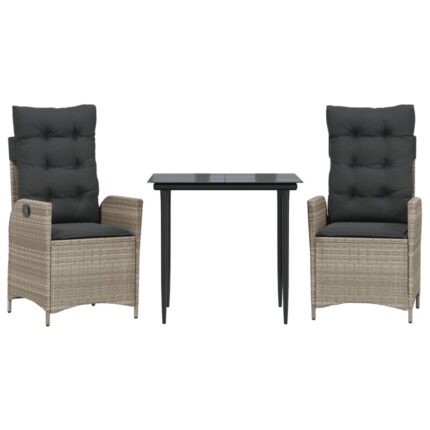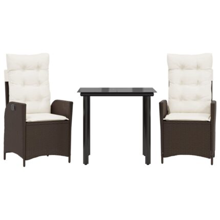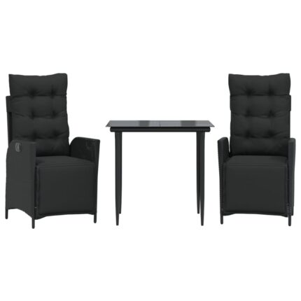 3-tlg. Garten-Essgruppe mit Kissen Schwarz Poly Rattan