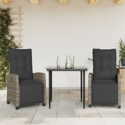 3-tlg. Garten-Essgruppe mit Kissen Grau Poly Rattan