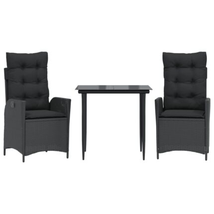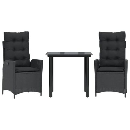 3-tlg. Garten-Essgruppe mit Kissen Schwarz Poly Rattan