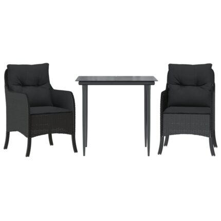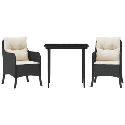 3-tlg. Garten-Essgruppe mit Kissen Schwarz Poly Rattan
