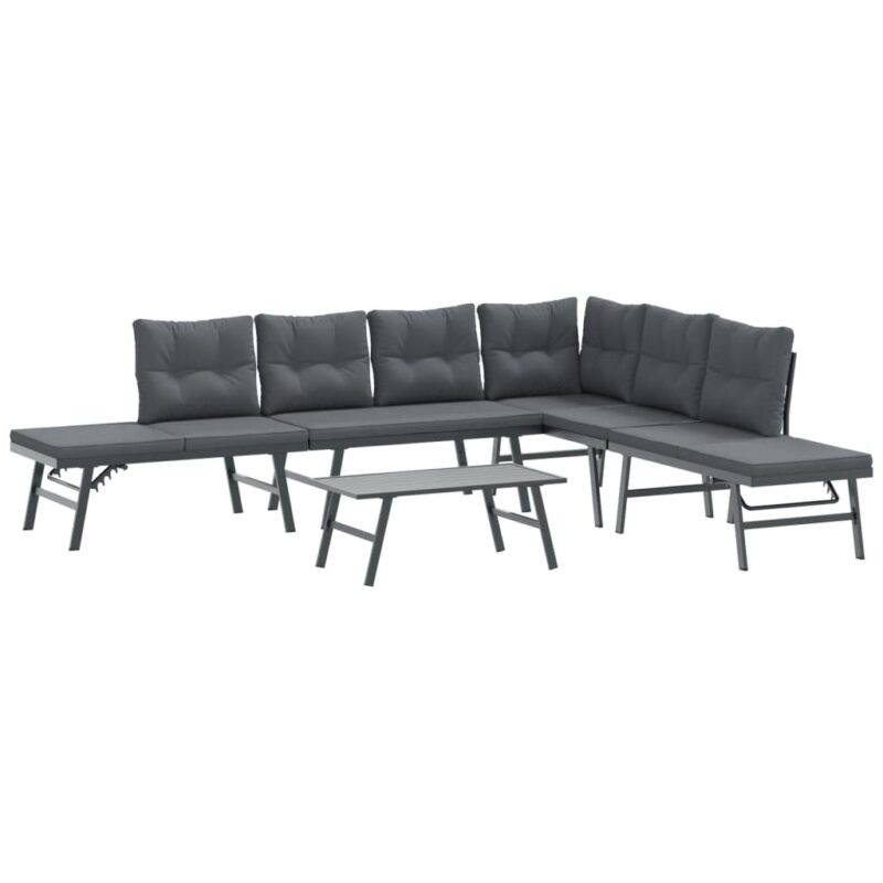 5-tlg. Garten-Sitzgruppe mit Kissen Schwarz Stahl