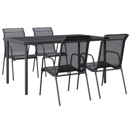 5-tlg. Garten-Essgruppe Schwarz Stahl und Textilene