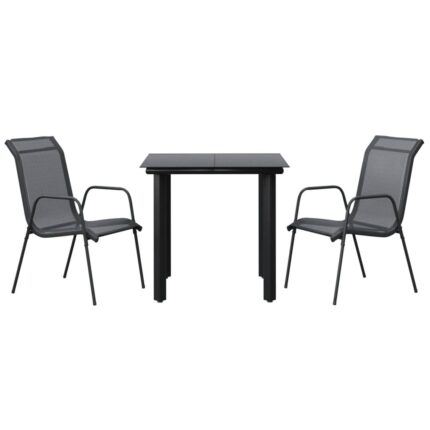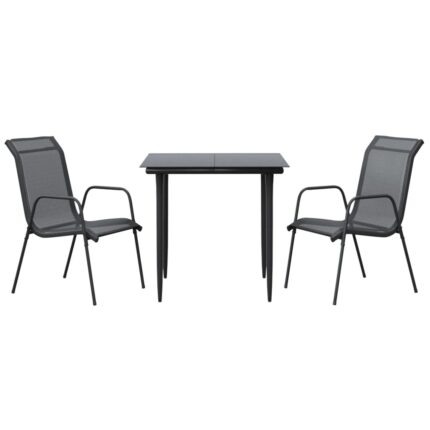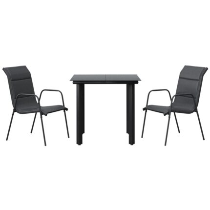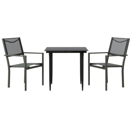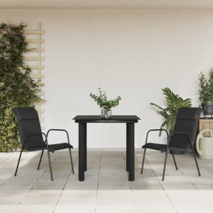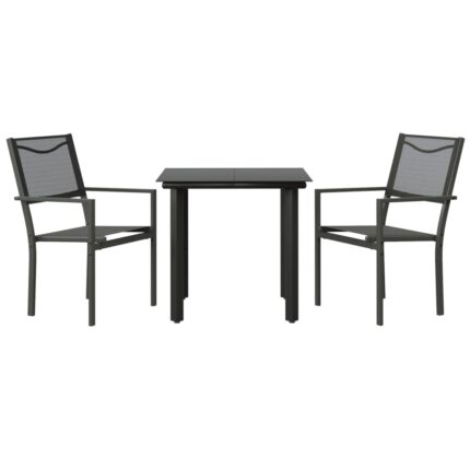 3-tlg. Garten-Essgruppe Schwarz Stahl und Textilene
