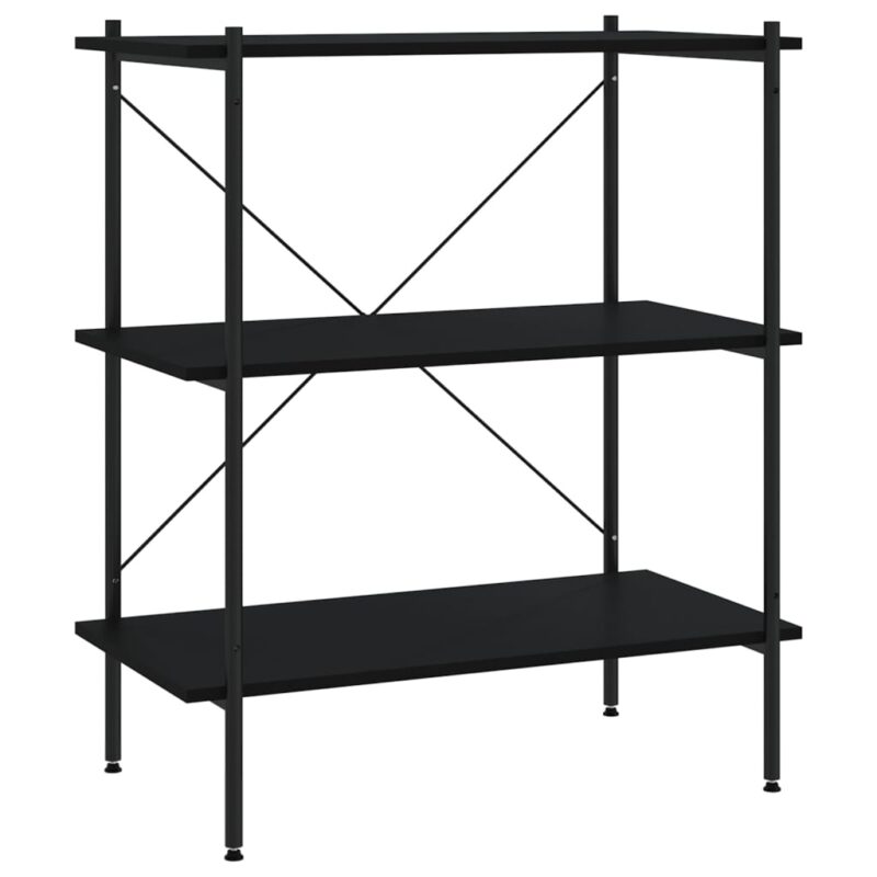 Regal mit 3 Böden Schwarz und Natur 80x40x92 cm