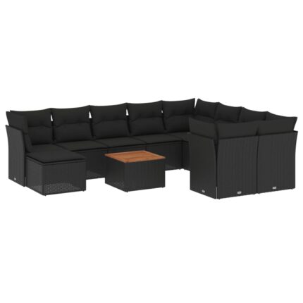 11-tlg. Garten-Sofagarnitur mit Kissen Schwarz Poly Rattan