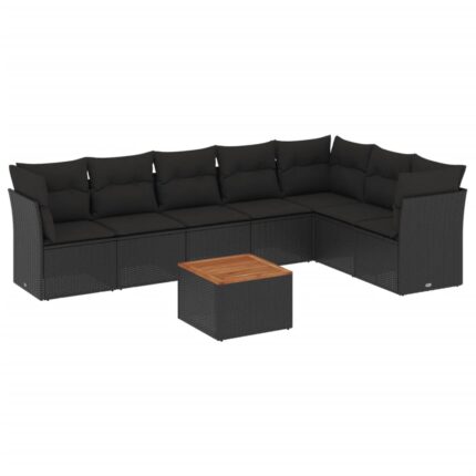 8-tlg. Garten-Sofagarnitur mit Kissen Schwarz Poly Rattan