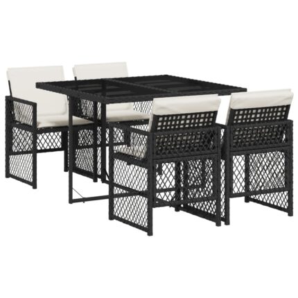5-tlg. Garten-Essgruppe mit Kissen Schwarz Poly Rattan
