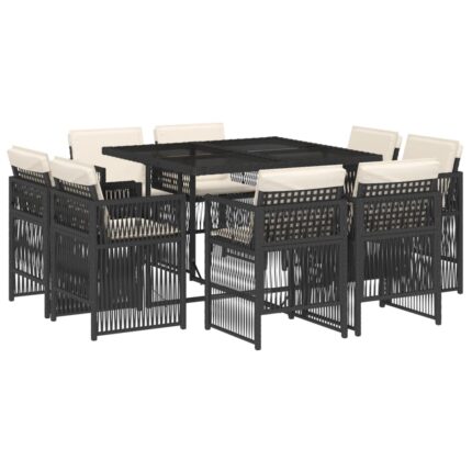 9-tlg. Garten-Essgruppe mit Kissen Schwarz Poly Rattan