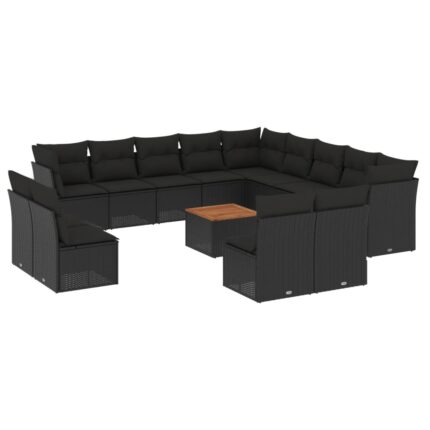 14-tlg. Garten-Sofagarnitur mit Kissen Schwarz Poly Rattan