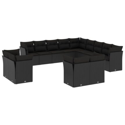 13-teiliges Gartensofa-Set mit Kissen, schwarzes Polyrattan