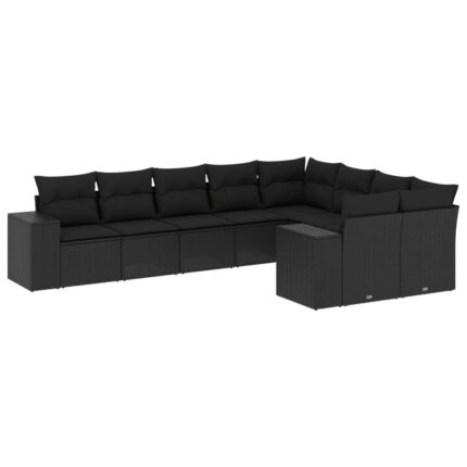 10-tlg. Garten-Sofagarnitur mit Kissen Schwarz Poly Rattan