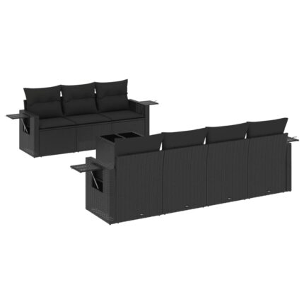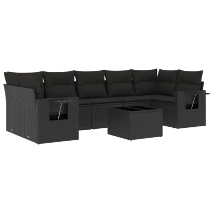 8-tlg. Garten-Sofagarnitur mit Kissen Schwarz Poly Rattan
