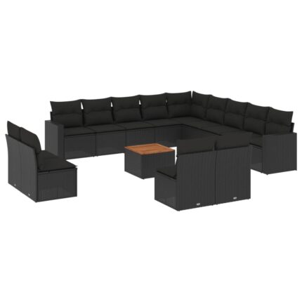 14-tlg. Garten-Sofagarnitur mit Kissen Schwarz Poly Rattan
