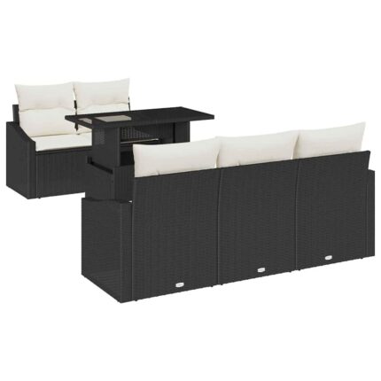 Garten-Sofa-Set mit Speicher 6 pcs Schwarz Poly Rattan