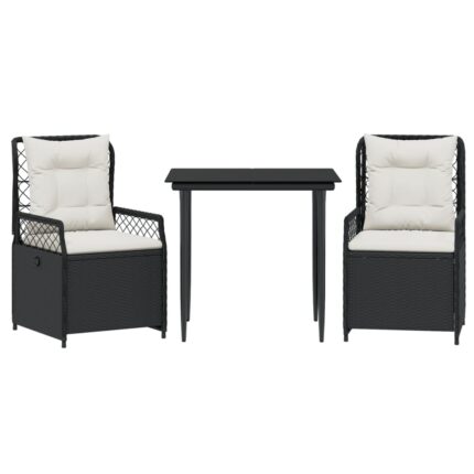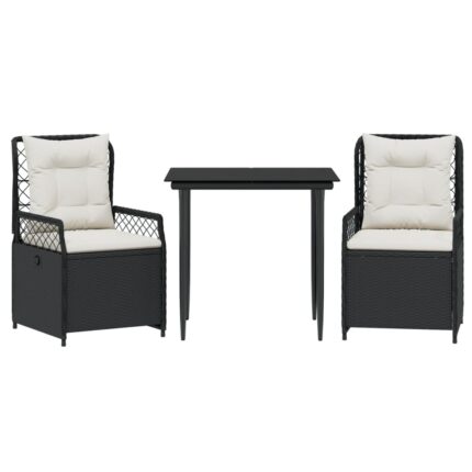 3-tlg. Garten-Essgruppe mit Kissen Schwarz Poly Rattan