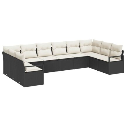 Gartensofa-set mit Kissen 10 pcs Schwarz und Weiss Poly-Rattan