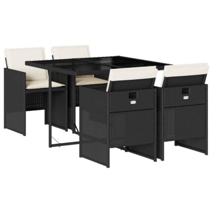 5-tlg. Garten-Essgruppe mit Kissen Schwarz Poly Rattan