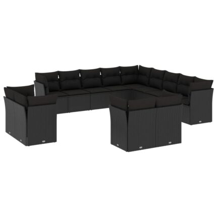 13-tlg. Garten-Sofagarnitur mit Kissen Schwarz Poly Rattan