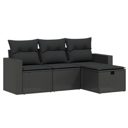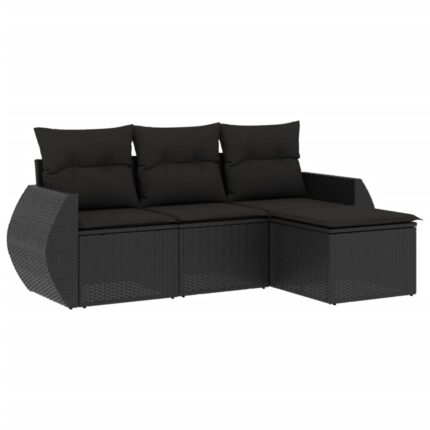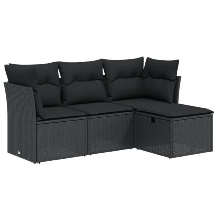 4-tlg. Garten-Sofagarnitur mit Kissen Schwarz Poly Rattan