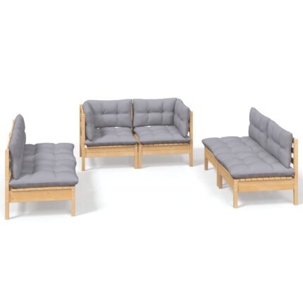 6-tlg. Garten-Lounge-Set mit Grauen Kissen Kiefer Massivholz