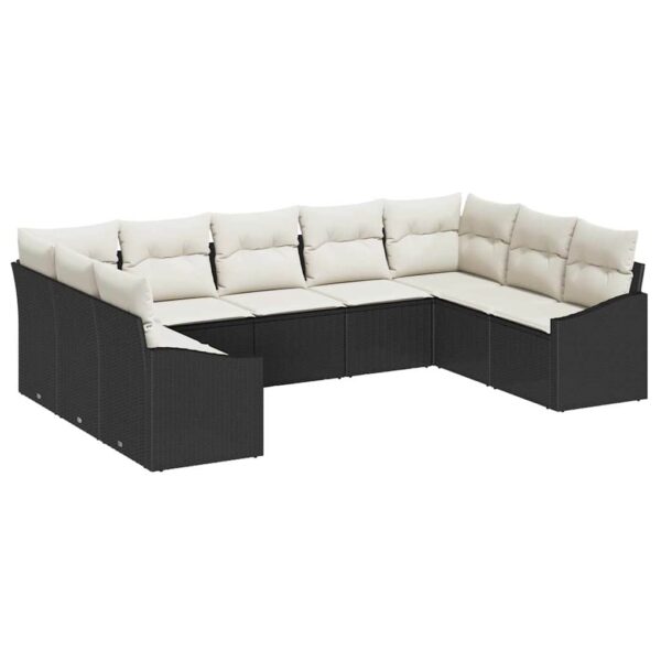 Sofa Set mit Kissen 9 pcs Schwarz Poly Rattan
