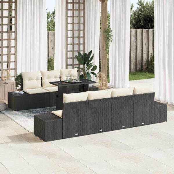 Sofa Set mit Kissen 8 pcs Schwarz und Creme Poly-Rattan