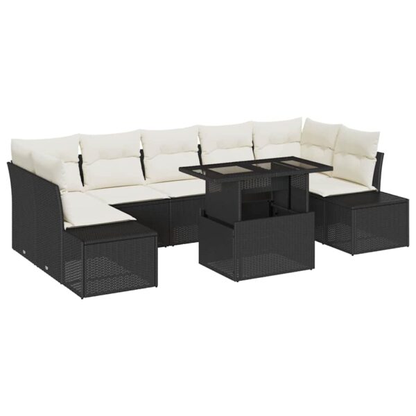 Sofa Set mit Kissen 9 pcs Schwarz und Creme Poly-Rattan