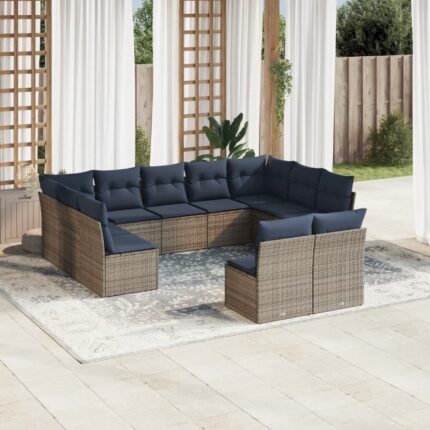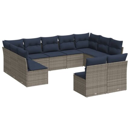 12-teiliges Gartensofa-Set mit Kissen, schwarzes Polyrattan