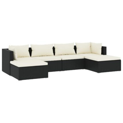 6-tlg. Garten-Lounge-Set mit Kissen Poly Rattan Schwarz