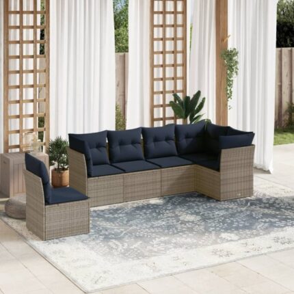 6-teiliges Gartensofa-Set mit Kissen, grau, Polyrattan