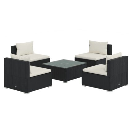 5-tlg. Garten-Lounge-Set mit Kissen Poly Rattan Schwarz