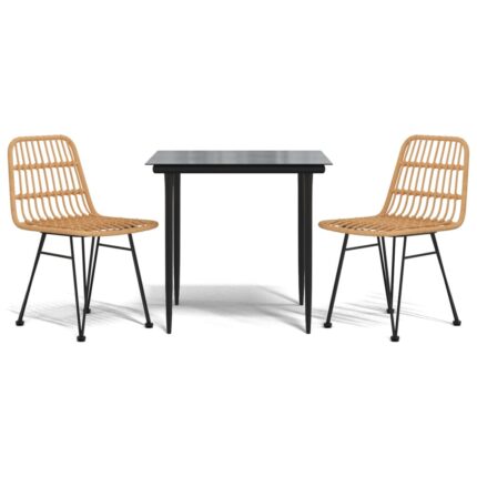 3-tlg. Garten-Essgruppe Poly Rattan Schwarz