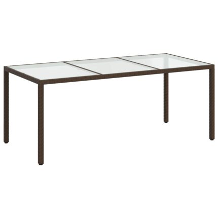 Gartentisch Braun 190x90x75 cm Gehärtetes Glas und Poly Rattan