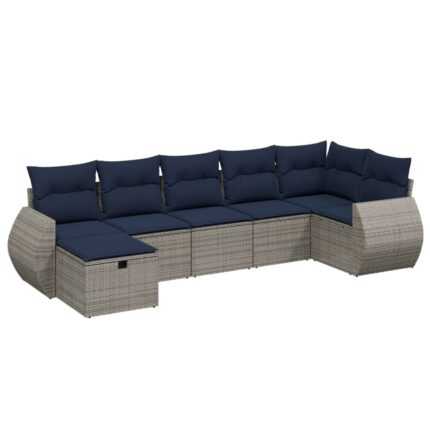 7-tlg. Garten-Sofagarnitur mit Kissen Grau Poly Rattan