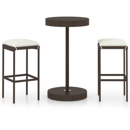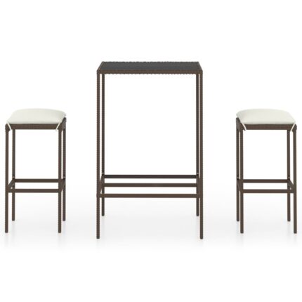3-tlg. Gartenbar-Set mit Kissen Poly Rattan Braun
