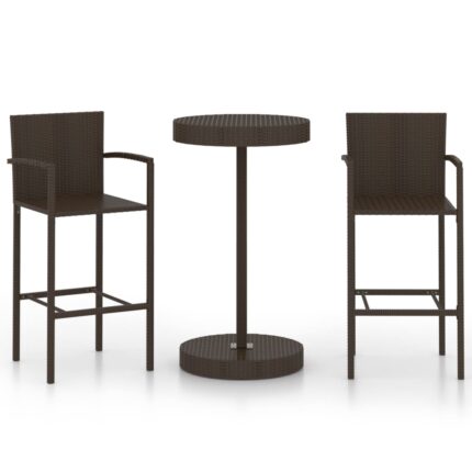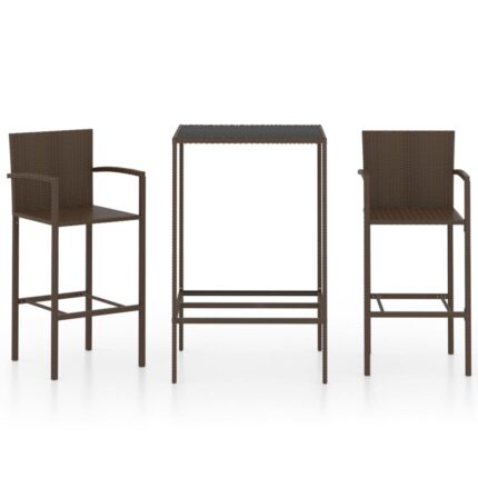 3-tlg. Gartenbar-Set Poly Rattan Braun