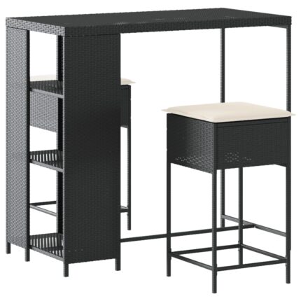 3-tlg. Gartenbar-Set mit Kissen Schwarz Poly Rattan